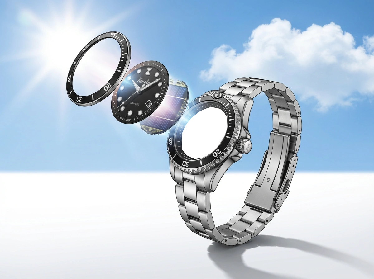 The solar movement in this watch eliminates the need for frequent battery disposal, offering a green, low-maintenance timepiece.